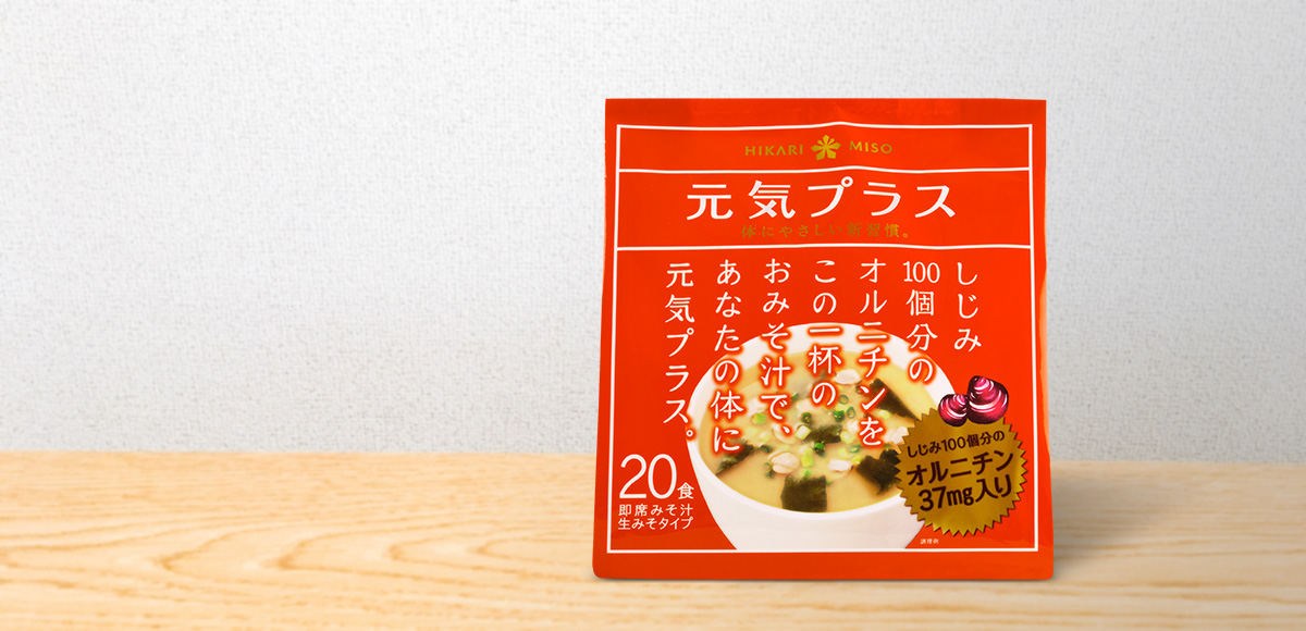 しじみ100個分(37mg)のオルニチンを配合した即席味噌汁。忙しい日も、手軽で体にやさしく元気をplusしてくれる商品です。