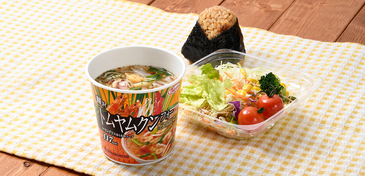 唐辛子とレモングラスをふんだんに使い、辛味と酸味のパンチの効いた本格スープに仕上げました。スパイシーな香りを演出する調味油付です。