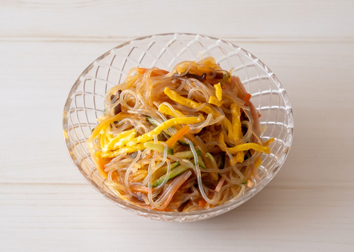 中華ドレッシングと野菜、ポットで湯戻しした春雨を和えるだけで、春雨サラダがあっという間につくれます。
