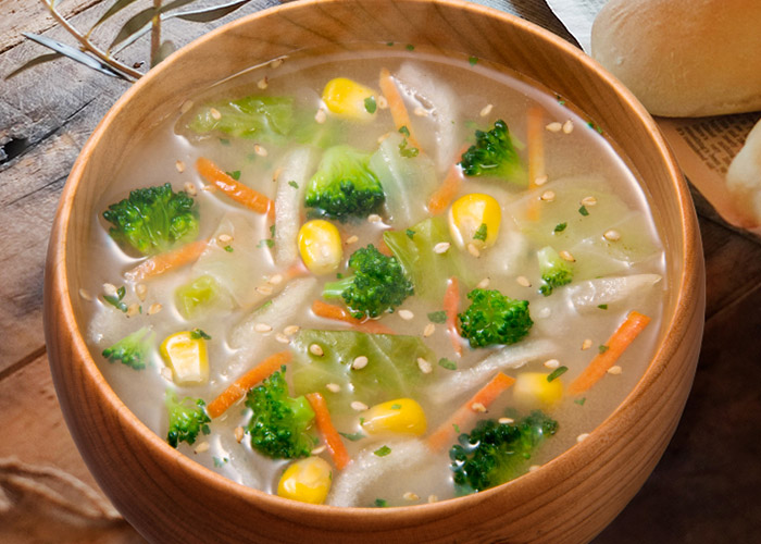 「ブロッコリーと4種の野菜」は、野菜と鶏のだしをベースにチーズの風味を加えた豆乳仕立てのコクと彩りのある"洋風みそ汁”です。