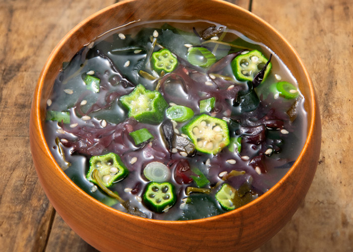 「オクラと5種の海藻」は、オクラと5種の海藻がおりなすねばとろ食感と、かつおと昆布のだしを効かせたうま味を楽しめる一杯です。
