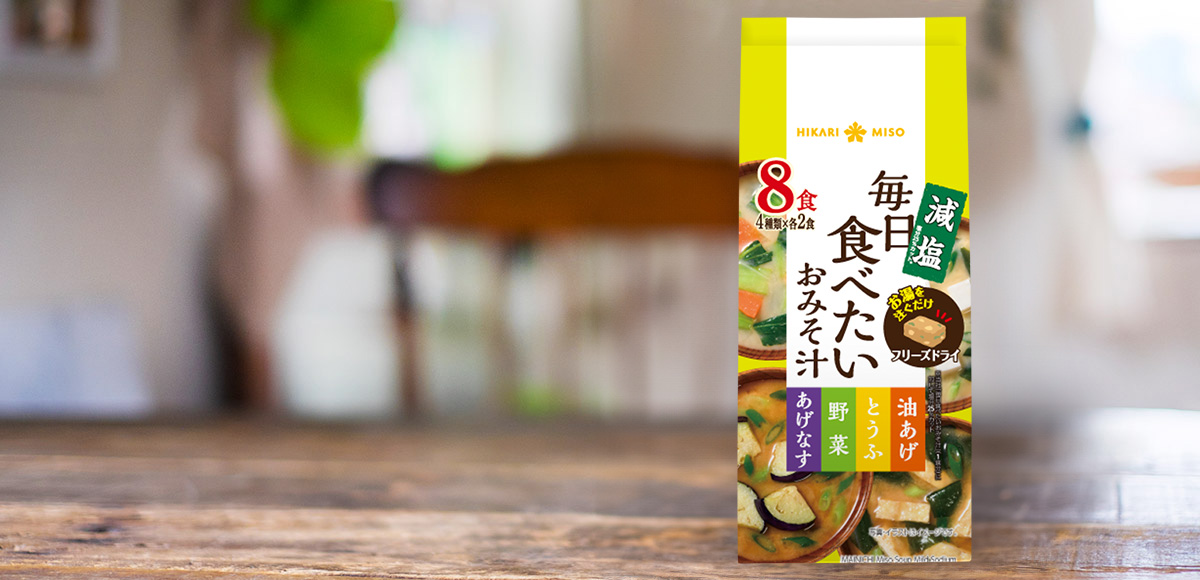 お湯を注ぐだけで、手作りに近い味わいや具が手軽に楽しめると人気のフリーズドライブロックの即席みそ汁『毎日食べたいおみそ汁』から減塩タイプが登場しました。