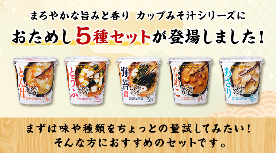 ひかり味噌 カップみそ汁 まろやかな旨みと香り お試し5種セット (×各1カップ)