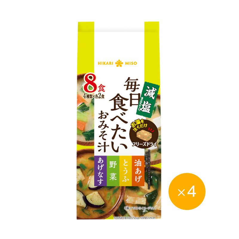 鰹と昆布だしを効かせた4種の味噌汁をアソートパックにしました。味噌とだしのバランスがよく、塩分25%カット(当社比較)でありながら、塩分の低さを感じさせない豊かな味わいが特長です。