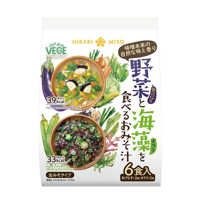 野菜不足を補う具だくさん味噌汁「VEGE MISO SOUP」シリーズより、袋入りタイプが登場。具材は、野菜と海藻の2種類。毎日のお弁当のお供に、忙しい朝の朝食に、ストックしてお使いください。