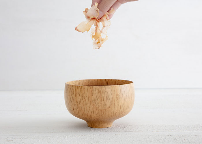 かつおぶしを別添にすることで、削りたての味と香りを保ちます。仕上げに加えることで、みそ汁の味わいをさらに高めます。
