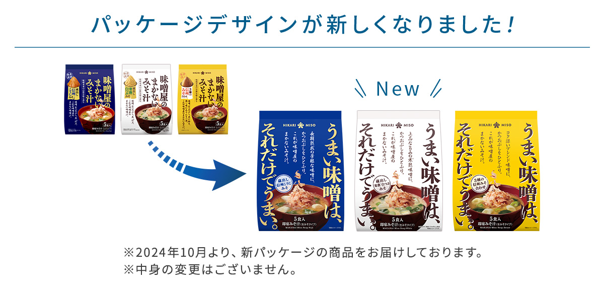 味噌屋だから知っているとっておきのおみそ汁を、商品にしました。味噌蔵に眠っているじっくり熟成された味噌に、具を入れてお湯を注ぎ、最後にかつおぶしをパラッとひとふり。素材本来の豊かな味わいをお楽しみいただけます。