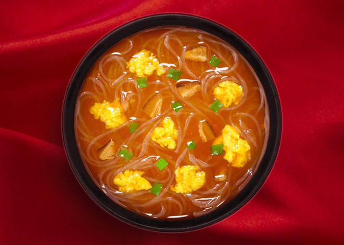 あさりとチキンのうま味の中に唐辛子の辛味を効かせた、さわやかな酸味の酸辣湯スープです。
