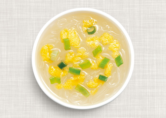 チキンのうま味がやさしく広がる、かきたまスープです。ごま油の風味が、おいしさを引き立てます。