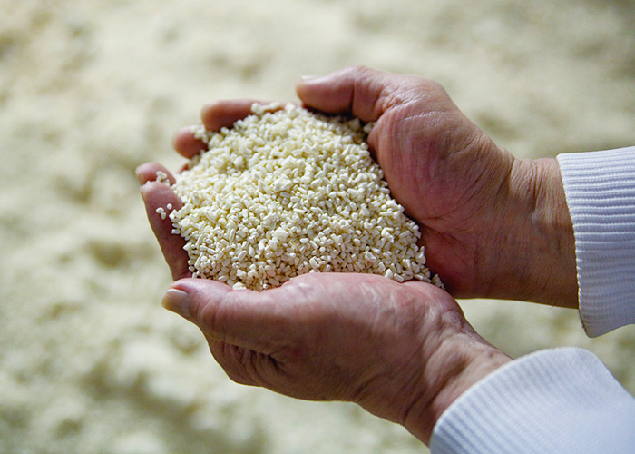 味噌の発酵に欠かせない「米麹」の原料は、甘みの強い国産米を贅沢に使い、二晩かけて麹をつくります。米の状態、麹菌の働き具合を職人がこれまでの経験を頼りに見守ります。