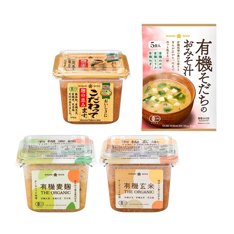 有機味噌のリーディングカンパニーであるひかり味噌が渾身を込めてつくるオーガニック味噌をお得なセットでご用意しました。