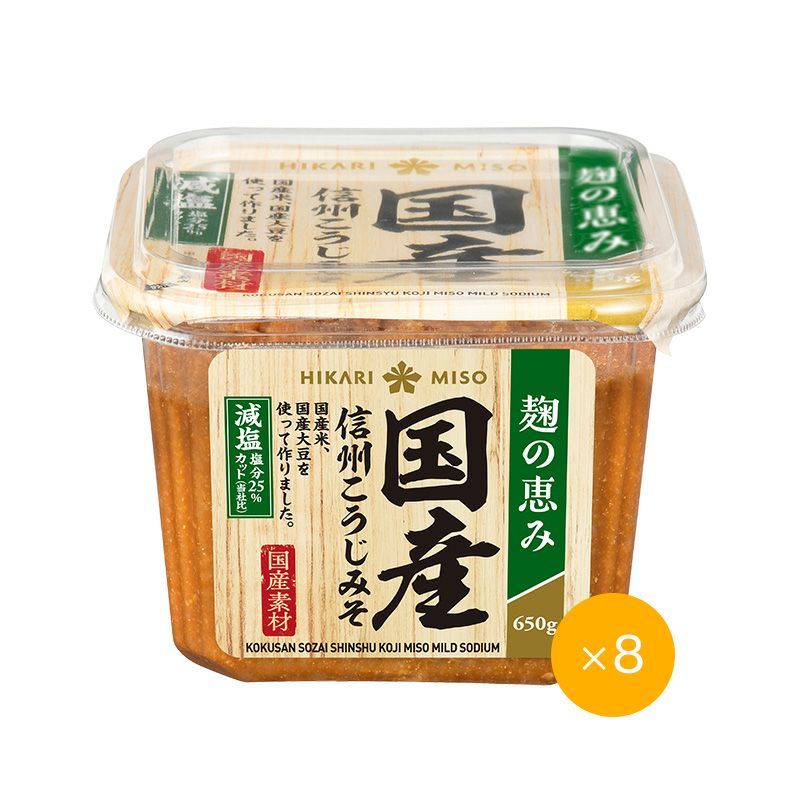 『国産素材 信州こうじみそ』に対し、25%塩分をカットした減塩タイプです。減塩ながら芳醇な香りと旨みが感じられる満足感のある味わいに仕上げました。国産大豆、国産米、国産塩を使い、自然のおいしさをそのまま生かした信州こうじ味噌です。(2024年12月リニューアル発売)