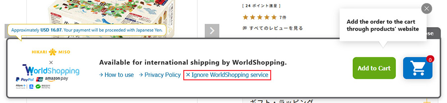 If you want to purchase directly from the Hikari Miso Online Shop, be sure to click “Ignore WorldShopping service.”