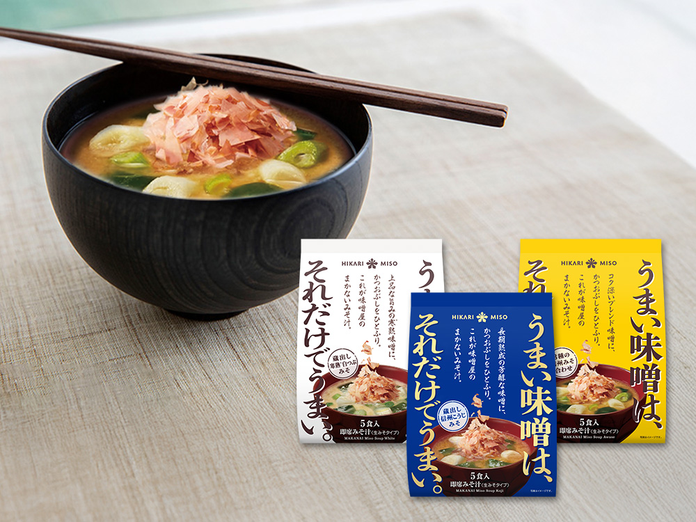 最初に発売された商品が、4種類の調味みそ(信州みそ、仙台みそ合わせ、三州豆みそ合わせ、九州麦みそ合わせ)と1種類の具を組み合わせた「こだわってます日本の味 産地のみそ汁めぐり8食」です。当時、他にはないユニークな特長のある商品として話題となりました。2008年