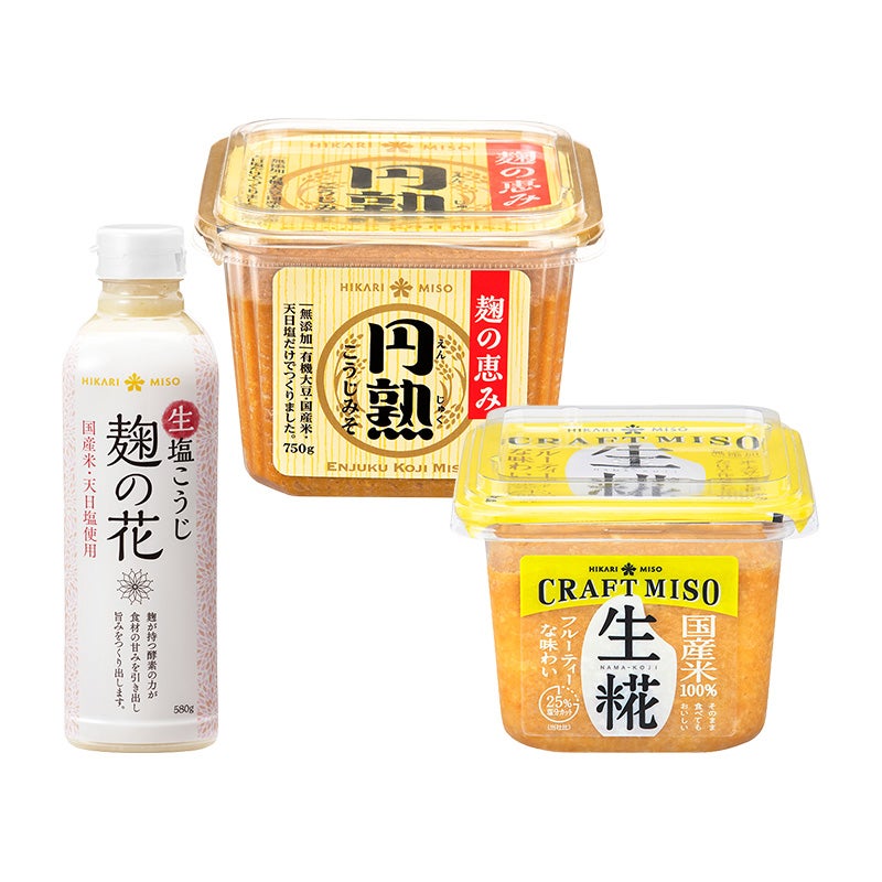 BRAND ひかり味噌󠄀のブランド紹介 円熟こうじみそ 糀の持つ自然な甘味やしっかりとしたうま味、豊かな香りを感じられる、人気のロングセラーシリーズ。 こだわってます 有機JAS認定の大豆・米を使い、じっくり熟成させたコクと旨みを味わえる赤系の無添加こうじみそ。 CRAFT MISO 生糀 みそをもっと自由に。そのまま食べてもおいしい、フルーティで豊かな味わいのクラフト味噌シリーズ。 産地のみそ汁めぐり アソートタイプは具材との組み合わせも楽しめる、全国の名産味噌󠄀が味わえる即席みそ汁のシリーズ。 選べるスープ春雨 料理やお弁当と相性のよい、ベーシックな味をバラエティ豊かにアソートした定番人気のスープ春雨シリーズ。 味噌󠄀屋のまかないみそ汁 味噌󠄀屋だから知っている、とっておきの一杯をお届けします。 VIEW MORE